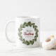 Denna enkla och snyggt julafton i mugg har en vacker andedräkt med grönt löv, röda hollbär och bruna kastanjer, gräs cone. Dessutom finns en grönt- och rödmanustypografi med olika stilar som säger "God jul och Gott nytt år" på vit bakgrund