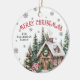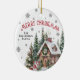 Fira säsongen med den här charmerande julprydnaden med en vinter-stuga med festlig vintern. Den mysiga stugan är kapad mellan gräs träd och hullbär i högernas hörn i grund, med rök stigning från skorsten och en andedräkt på dörren för att skapa en varm helgdag. Center ovan är "God jul" i ett snyggt skript med en lätt kurva, som ger en glad och klassisk beröring. Du kan ändra ordalydelsen till "Glad helg", "Säsongens Hälsning" eller vilken anpassningsbar som helst till kostym i stil. På den lämnat sidan under hälsning finns det utrymme för din familj namn eller ditt företag namn i ett rent serif-teckensnitt. Fintvätt av snöflingor är utspridd genom hela designen, ge att det är en mjuk vindruva som avslutar. Samma layout visas på båda sidor om dekorationen, och skapar den som en perfektens keepy eller gåva för nära och kära, klienter eller anställda. All text och färg kan anpassas för att matcha ditt helgdag-tema.