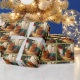 Festivt dekorerat rum, traditionell jul presentpapper
