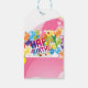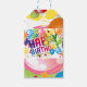 En livfull födelsedagsfirande scen fylld med färgglada ballonger och konfetti.