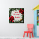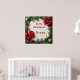Elegant julkrans med tallgrenar, gyllene ornament, röd slinga och snöflingsdekorationer. Perfekt för julhälsningar, festliga inbjudningar och säsongsbetonade designs.
