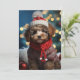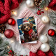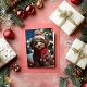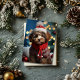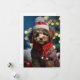 Skicka varma högtidliga hälsningar med detta charmiga julkort som visar en söt valp i mysig vinterdräkt! Med gnistrande festliga ljus i bakgrunden fångar denna hjärtliga design magin i säsongen. Baksidan av kortet är anpassningsbar, så att du kan lägga till en personlig hälsning till vänner, familj eller kunder. Perfekt för att sprida julglädje med en touch av gullighet!