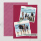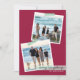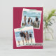 Kortet har två offset fyrkantiga fotospar "tejpad" med grön och vit diagonalt randig washitejp på en djup magenta röd bakgrund.
