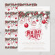 Välkommen till säsongen med charm med vår Ornaments-inbjudan! Med vackra akvarellprydnader som hänger från en tallgren, visar denna design livfulla röda och vita festliga prydnader, kombinerat med fantastisk typografi som förkroppsligar högtidlig glädje.