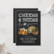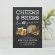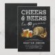 Rustika inbjudningskort för 60-årsfirande för vuxna med svart tavla-bakgrund, ett urval av vattenfärg öl, kringla och ett ölfat, talesättet "Festsupé & Öl för 60 år", och en modern festmall som är lätt att anpassa.