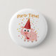 Det är fest! Söt gris redo för fest med en festlig hatt, blåsor och konfetti.