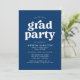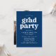 inbjudningskort för studentfest i snyggt med "grad party" som visas i fet vit text med de uppgifter om student namn och party som visas nedan på marin blå bakgrund. Baksidan av marinen studentfest inbjudan visar lodrät student. De enkla inbjudningskorten för studentfest är perfekt för både högskolan och högskolan i studenter.