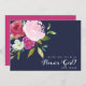 Ett leende på ett litet ansikte med denna vackra, frieri blomflicka har en fet kaskadbukett av vattenfärgblommor i Fuchsia och baby/ rosa, med grönt löv. Teckensnittet stil med handbokstäver paras med modernt sans serif-teckensnitt. Bakgrunden är i fast marinblått, och motsatsen är i fuchsisk rosa. Anpassa med namnen.