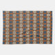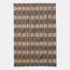 Den här utformningen har blå och terracotta färg i ett fetstilt geometriskt mönster. Linjer och former bildar ett stödraster som upprepas och skapar ett strukturerat utseende.