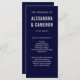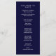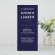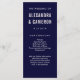 Det här moderna bröllopsprogrammet har rosa i marinblå bakgrund.