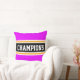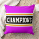 Den här sportiska fotbollsdesignen har en atletisk CHAMPIONstext inuti ett markerat svart center rand med vita och gult tävla ränder mot ljusa yttre ränder av rosa. Texten och färg i den här utformningen kan vara personlig.