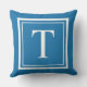 Fet Coboltblå Vit Fyrkantig Ram Monogram Kudde