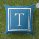 En fet utomhusdyna med en vit monograminitial inom en fyrkantig ram på en livfull koboltblå bakgrund. Den tidlösa serifbokstaven och den rena geometriska ramen ger en slående, prepptyngd accent för poolside-stolar, trädgårdsmöbler eller däckstolar. Initialen är helt anpassningsbar.