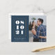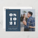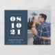 Meddela ditt bröllop-datum med den här snyggten som har fet vit text på en blå bakgrund och ett foto av paret. Texten kan redigeras tillsammans med den vackra bilden.
