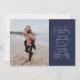 Med ett fet datum i ett marint blått färg och mycket utrymme för anpassningsbar med all information om bröllop, har det här Spara datumkortet också en ställe för ett foto med en enda lodrät förlovning. Baksidan är en samordnande marinblå färg med rand.