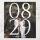 Denna moderna och djärva vin-märkning är perfekt för par som gifta sig eller firar en årsdag. Datumet bröllop visas med stora vita siffror i vitt med datumåret bröllop i ett komplementärt skriptteckensnitt under. Parets namn är visning inom nollstrecket för månaderna januari till september och till lämnat av det för månaderna oktober till december. Den moderna bröllop-datumutformningen sitter ovanpå ett foto och skapar vin-etiketten verkligen unik. Den här vin-etiketten gör en underbar gåva, tjänst eller bröllopsdag dekoration.