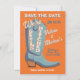 Spara datumet för Cowboys westerna start med roligt typsnitt och en modets återbildare. Har en cowboybock med funky färg av rosa, orange, blått och mycket ljust grå vit. Perfekt för en cowboypojke land western tog bröllop till kom! Alla formuleringar kan ändras utom ord "Komma Hitched". Hand plockade av McBooboos. Om du vill göra fler ändringar går du till Anpassa den här mallen. På grund kan du se "Vill du anpassa designen ännu mer? Klicka på EDIT med Design verktyg. Det kommer att krävas lite inlärning, men du kan ändra en del av typsnitt och en del färg, flytta sak runt eller ta bort det du behöver. Du får tag på det.