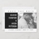 Fetstiskt geometriskt foto Spara datum meddelande med minimalistisk och modern geometrisk utformning i svartvitt. Lägg till ett foto och dina bröllop-detaljer som du vill anpassa. Bakgrunden färg på baksidan av inbjudan kan ändras för att komplettera bilden eller för att lägga till färg i bröllop.