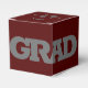 GRAD med fet grått-bokstäver runt framsidan av dessa 2-tums fyrkantiga studentfester för mörk med ditt namn och tack för ditt meddelande längst upp. Fyll med behandlingar som ett tack till gästerna vid din studentfest. MATCHING-objekt och mer färg i vår samling.