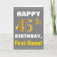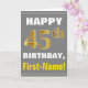 Fet, Grått, faux Guld 45:e födelsedagen med Namn-k Kort