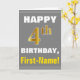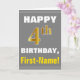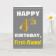 Fet, Grått, faux Guld 4e födelsedagen med Namn Kort