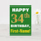 Fet, Grönt, Faux Guld 34:e födelsedagen med Namn-k Kort