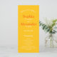 Fet Gult och Orange Färgt Bröllopsprogram. Om du vill ändra texten väljer du "Information". Om du vill justera textens placering, teckensnitt eller färg klickar du på "Redigera med Design Verktyg".