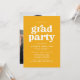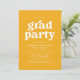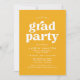 inbjudningskort för studentfest i snyggt med "grad party" som visas i fet vit text med de uppgifter om student namn och party som visas nedan på gultens bakgrund. Baksidan av gult studentfest inbjudan har lodrät student. De enkla inbjudningskorten för studentfest är perfekt för både högskolan och högskolan i studenter.