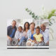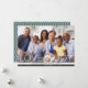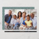Ett rent, slimmat och modernt sätt att skicka ditt helgdag, vårt foto med fetstil, helgdag, har "Kärlek & joy" i modern typografi med en dekorativ ampersand, och ditt namn eller personliga meddelande visas i en skarp grönt på ett skarpt vitt rand. Anpassa med ditt favoritlandskapsorienterade familjefoto. Kort som går tillbaka till ett festivt geometriskt mönster i grönt av skarpsill och vitt.