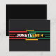 Den här fetstilta grafiken visningar "JUNETEENTH" kraftfullt i ett slående vitt och gult-teckensnitt mot en helsvart bakgrund. Utformningen innefattar ett starkt vågrät rand i det panafrikanska färgen av rött, gult och grönt, som symboliserar enighet, frigörelse och respekt. Detta otrevliga biet förmedlar direkt betydelsen av den elfte juni. Visning det att högtidlighålla denna viktiga dag. Perfekt för att fira den tionde juni och hedra det afrikanska amerikanska arvet. Perfektens gåva till Junettonde evenemang och de som värdesätter en opassande design.