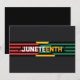 Den här fetstilta grafiken visningar "JUNETEENTH" kraftfullt i ett slående vitt och gult-teckensnitt mot en helsvart bakgrund. Utformningen innefattar ett starkt vågrät rand i det panafrikanska färgen av rött, gult och grönt, som symboliserar enighet, frigörelse och respekt. Detta otrevliga biet förmedlar direkt betydelsen av den elfte juni. Visning det att högtidlighålla denna viktiga dag. Perfekt för att fira den tionde juni och hedra det afrikanska amerikanska arvet. Perfektens gåva till Junettonde evenemang och de som värdesätter en opassande design.