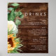 Den djärva solrossen land | Trä bröllop-drycker poster är perfekt för din klassiska boho-sommarstuga bröllop. Konstruktionen har en bukett med vintage vattenfärgssolblommor av gult guld och rustisk orange, elegant modern sage grönt eucalyptus greenery och ett vitt elfenben ro. Utformningen är idealisk för en avslappnad utomhus av minimalistiskt fall från baren bröllop. Var snäll och kontakta oss gärna om du vill ha några frågor om produktens design, jublar!