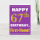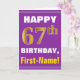 Fet, Lila, Faux Guld 67:e födelsedagen med Namn-ko Kort