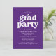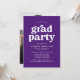 inbjudningskort för studentfest i snyggt med "grad party" som visas i fet vit text med de uppgifter om student namn och party som visas nedan på lila bakgrund. Baksidan av den lila studentfest inbjudan har lodrät student. De enkla inbjudningskorten för studentfest är perfekt för både högskolan och högskolan i studenter.