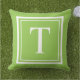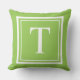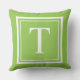 En fet utomhusdynan med en vit monogram-bokstav innanför en fyrkantig ram på en livfull limegrön bakgrund. Den tidlösa serif-bokstaven och den rena geometriska ramen ger livlig, prep-energy till trädgårdsmöbler, uteplats eller poolstolar. Bokstaven är helt anpassningsbar.