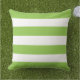 En fet utomhusdyna med livfulla limegröna och vita breda horisontella ränder. Det livliga cabana-randmönstret ger fräsch, energisk stil till trädgårdsmöbler, trädgårdssoffa eller poolstolar. Ett roligt tillbehör som lägger till en ljus färgklick till varje utomhusarrangemang.