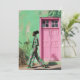 Ett slående mode-ögonblick som fångas i en stadsplats, med en snyggt kvinna som går tryggt förbi en texturerad grönt med en djärv rosa dörr. Hennes pulserande grönt och rosa blommigt kompletterar bakgrunden och skapar en fantastisk kontrast. Bilden visar hur det moderna mode är sammanfogat med kulturellt inflytande, vilket belyser förtroende, färg och individualitet.