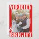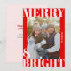 Fet Modern Röd Vit Merry & Bright Foto Julkort