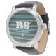 Fet Monogram & Namn, Lt. Teal Linjer på Mörk Grått Armbandsur