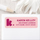 returetiketter i rosa eller anpassningsbar färg med ditt monogram, inledningsvis i stort, fet teckensnitt. Typsnitt och färg kan anpassas med verktyg.