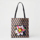 Fet mönster i abstrakt blomma på svart tygkasse