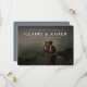 nyheterna om din förlovning och det kommande giftermål med det här enfoto-vågrät spara datumkortet med en elegant i vitt som sitter högst upp på ett vågrät-foto. Baksidan är en neutralt skifferskugga med en subtil struktur mönster. Du kan justera färg genom att klicka på "Anpassa".
