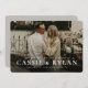 nyheterna om din förlovning och det kommande giftermål med det här enfoto-vågrät spara datumkortet med en vit elegant som sitter vid grund i ett vågrät-foto. Baksidan är en neutralt skugga med en subtil struktur mönster. Du kan justera färg genom att klicka på "Anpassa".