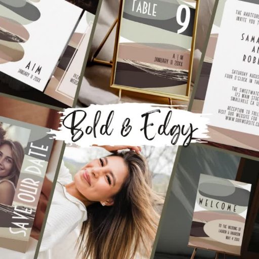 Fina inbjudningar till ditt djärva och edgy bröllop! Geometriska accenter från ge är ett unikt och modernt intryck. Hitta matchande objekt i min butik. Använda anpassningsfunktionen för att redigera informationen.