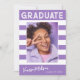 Trendig med fet stil, kort för studenten-meddelande, med inslag för återtext med handskrift. Student-fotot accentueras med fetstilt vitt rand. Kortets baksida ger personlig textutrymmen för information om studenten och framtida resor. Vita skrivningar om elegant är ofarliga eller anpassar enkelt bakgrunden så att den matchar din skolas primära färg eller valfri färg. Perfekt för gymnasiet, högskolan och universiteten.