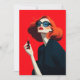 En slående digital illustration av en glamorös kvinna med flytande rött hår, stora solglasögon och pulserande rött läppar. Hon håller ett läppstift med tillförsikt mot en djärv röd bakgrund, som utesluter vintage Hollywood charm och tidlös elegans. Perfekt för mode älskare, konstentusiaster eller någon som ritas till chic, modern popkonst med en aning klassisk sofistikering.