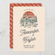 En roligt och ett modernt illustrerat ökenkort för bröllop spara datum med fetstilt färg som rött och grönt, en illustration av ett ökenlandskap med ett sol, modernt typsnitt för makens namn och en roligt saguaro cacti mönster på fetrött på baksidan. Helt anpassade textmall - även kan du ändra allt färg i designen verktyg om du vill (ja, till och med illustrationen!) Behöver du hjälp med den här designen? Släpp ett meddelande!