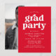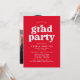 inbjudningskort för studentfest i snyggt med "grad party" som visas i fet vit stil med nedanstående uppgifter om student namn och party på röd bakgrund. Baksidan av den röda studentfesten inbjudan har lodrät student. De enkla inbjudningskorten för studentfest är perfekt för både högskolan och högskolan i studenter.