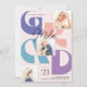 Fira Student med det här Retro 3-fotokortet för studenten. Designen har fet GRAD-typografi i lila, peachisk rosa och turkos i en modern kollagelayout. Rum för text på baksidan om du vill ha mer information eller om du vill lägga till inbjudningsinformation.