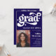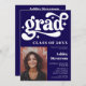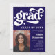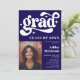 Fira student i stil med denna återinspirerade studentfest inbjudan! Med en roligt och fet marin, blå Grad-typografi med lekfulla svasser och gnistor ger den här designen en en vintage men ändå modern beröring. Den blå bakgrunden kompletterar det stilistigt utformade fotot av student och skapar en stående keepy. Perfekt för högskoleexamen eller universitetsexamen och firande!